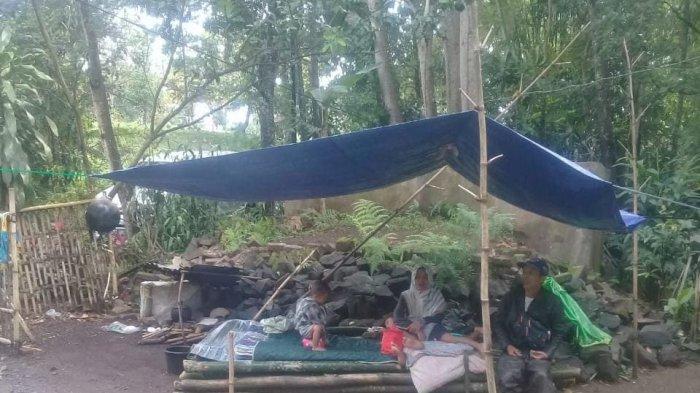 "Belum berani kalau tidur mah, jadinya saya buat tenda alakadarnya di samping rumah sama anak-anak sama keluarga" tambah Emus.