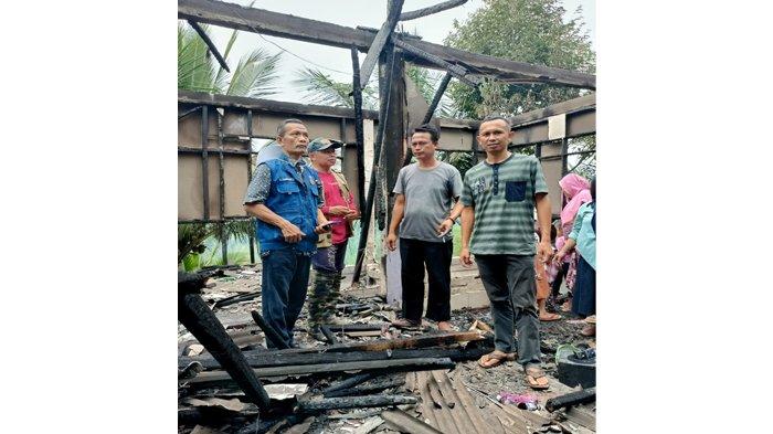 Diduga akibat korsleting listrik, rumah Hasanudin terbakar sekitar pukul 07:30 WIB.