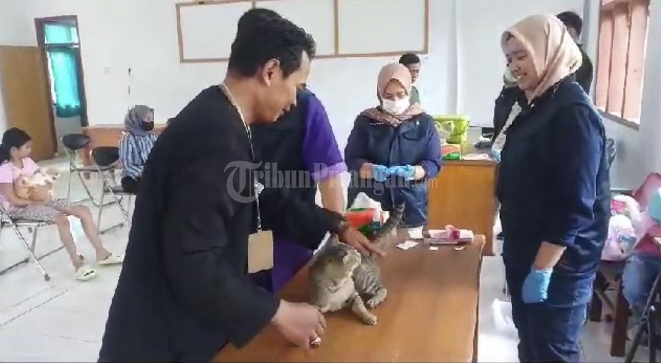 TRIBUNPRIANGAN.COM, KABUPATEN TASIKMALAYA - Dalam rangka mencegah penyebaran virus rabies kepada hewan peliharaan, Dinas Ketahanan Pangan, Pertanian, dan Perikanan (DKPPP) Kabupaten Tasikmalaya melakukan penyuntikan vaksin rabies terhadap hewan peliharaan milik masyarakat pada Kamis (21/9/2023).