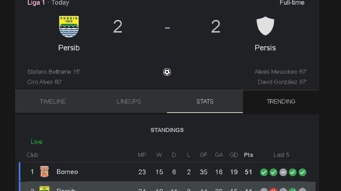 Baca juga: KLASEMEN Liga 1 Setelah Persib Bandung Ditahan Imbang Persis Solo, Gagal Menjauh dari Bali United