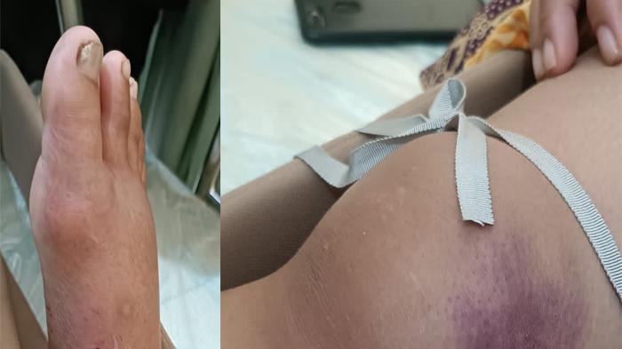 Elis Supriatin (34), warga Ciamis menjadi korban gigitan ular berwarna, kini kondisinya mengalami bengkak di kaki dan membutuhkan biaya untuk obat