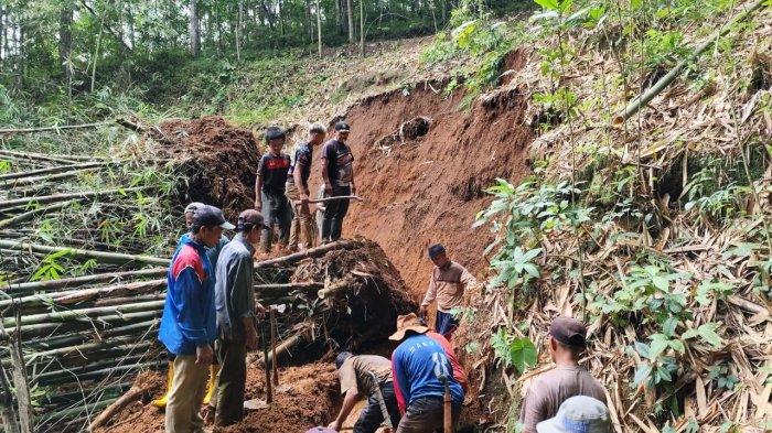Upaya penanganan longsoran segera dilakukan oleh warga bersama perangkat desa melalui gotong royong.