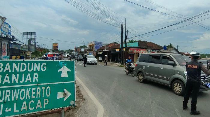 Untuk di jalur arteri atau jalan raya nasional pihaknya memberlakukan buka tutup di sekitar pertigaan Pancimas Kalipucang.