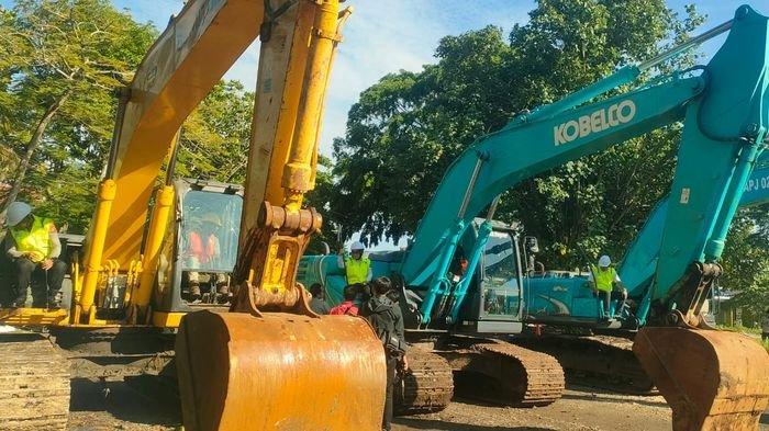 Sesaat pembongkaran, sedikitnya ada tiga unit alat berat eksavator yang diturunkan untuk meratakan bangunan kios-kios itu.