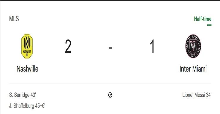 TRIBUNPRIANGAN.COM - Sedang berlangsung Nashville SC VS Inter Miami pada Major League Soccer, babak pertama skor masih 2-1. Messi cetak gol tapi Inter Miami tertinggal 2-1 atas tuan rumah.