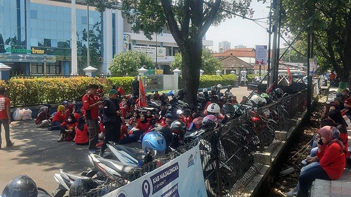 Aksi unjuk rasa yang dilakukan ini tak hanya dilakukan di Disnakertrans Jabar, melainkan dilakukan pula di Gedung Sate.
