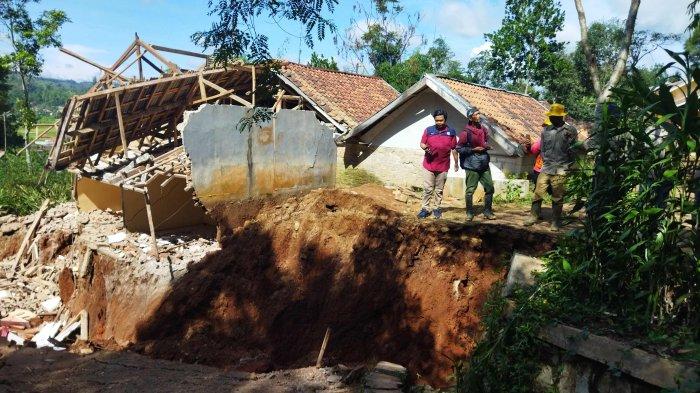 Mirip Bencana Likuifaksi, 10 Rumah di KBB Bak Ditelan Bumi Karena Pergeseran Tanah. Pemkab Bandung Berat tengah mengkaji rencana relokasi