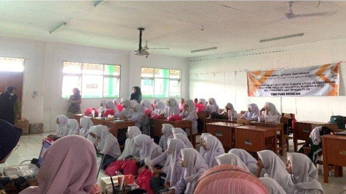 Buruh perempuan di Desa Tagogapu, Kecamatan Padalarang, Kabupaten Bandung Barat mengikuti penyuluhan kesehatan reproduksi.