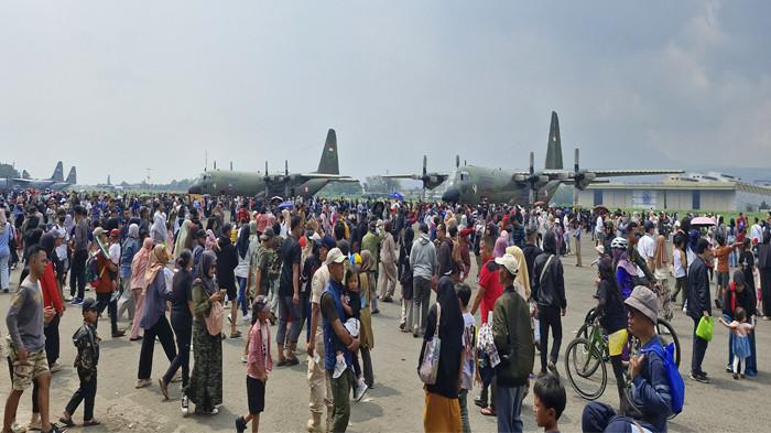 Ribuan warga pada akhir pekan memadati Lanud Husein Sastranegara, Bandung, untuk menyaksikan open base termasuk pesawat angkut
